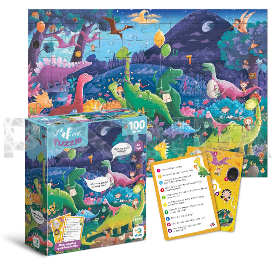Пазл DoDo LOOK AND FIND "Країна динозаврів" 33х47см, 100 элементов, 300669