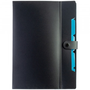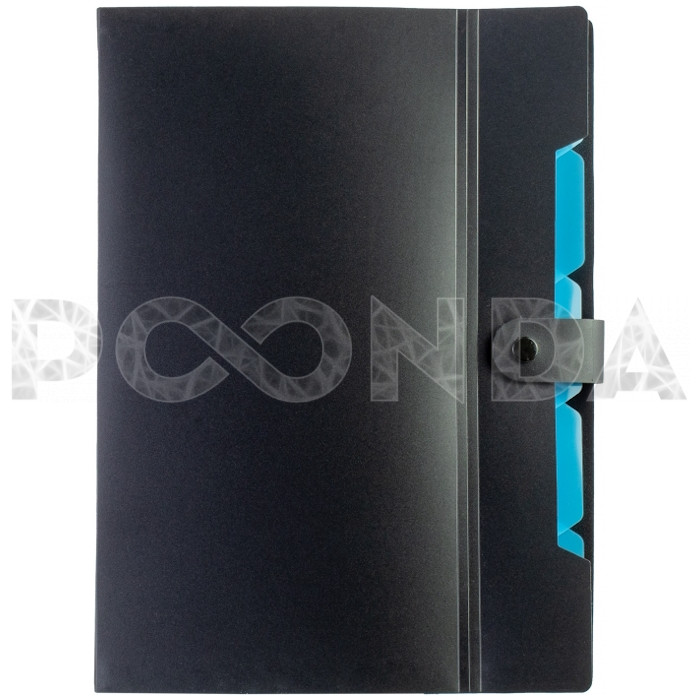 Папка деловая A4 Optima 35538 6 отделений, на кнопке с расширением, черная, пластик 500мкм