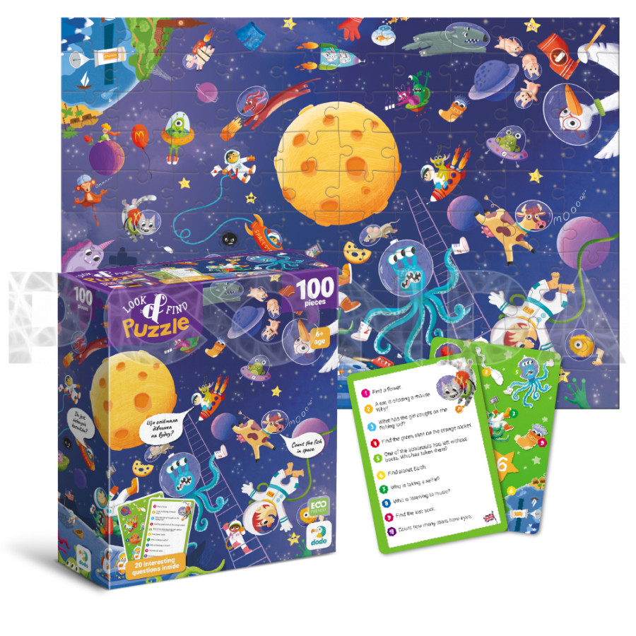 Пазл DoDo LOOK AND FIND "Безумный космос" 33х47см, 100 элементов, 300668