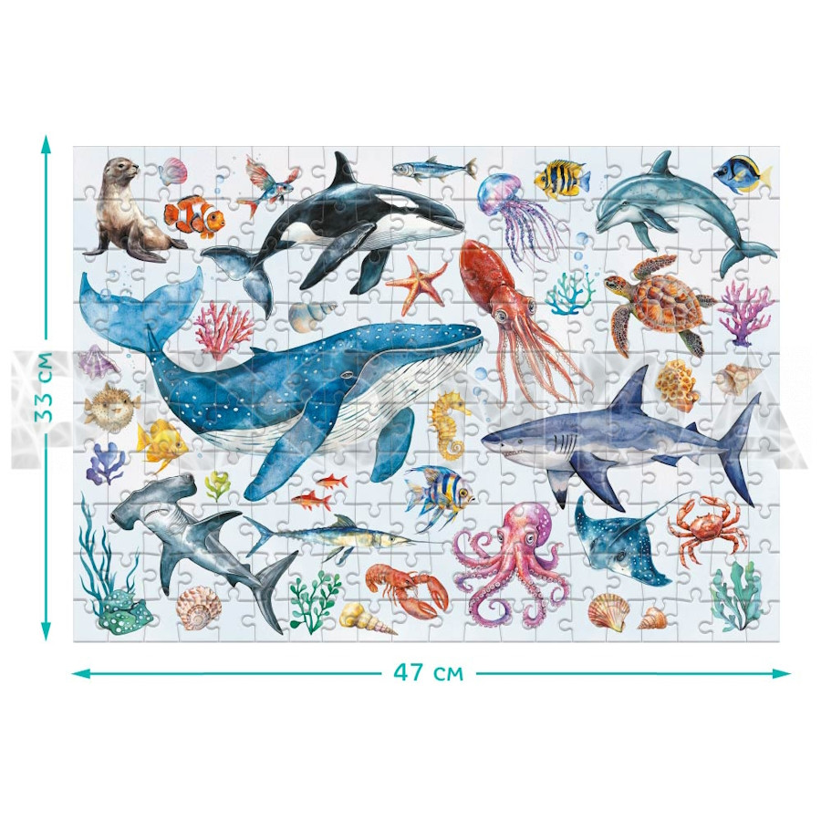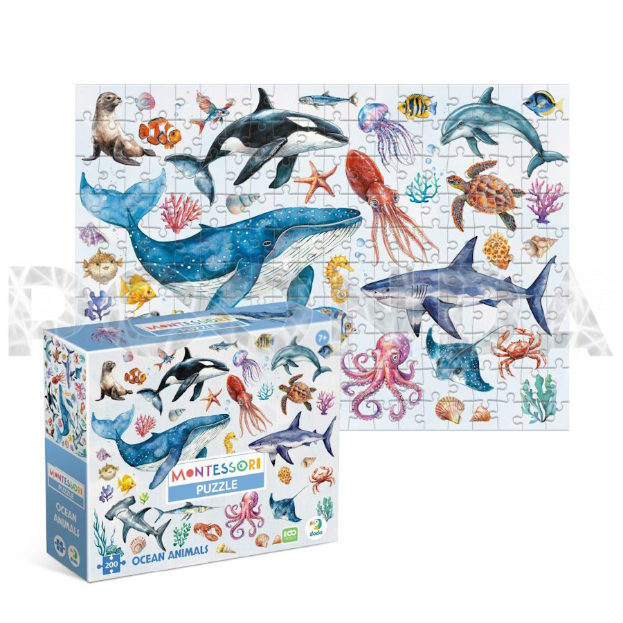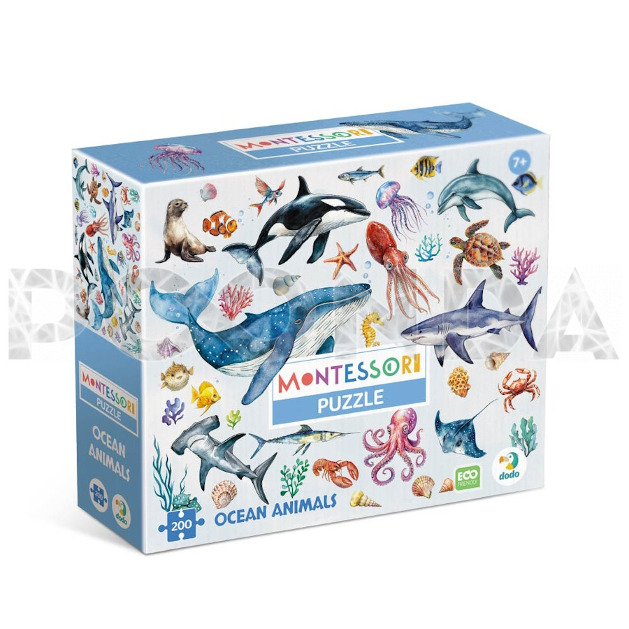 Пазл DoDo Монтессори "Океанические животные" 47х33см, 200 элементов, 300630