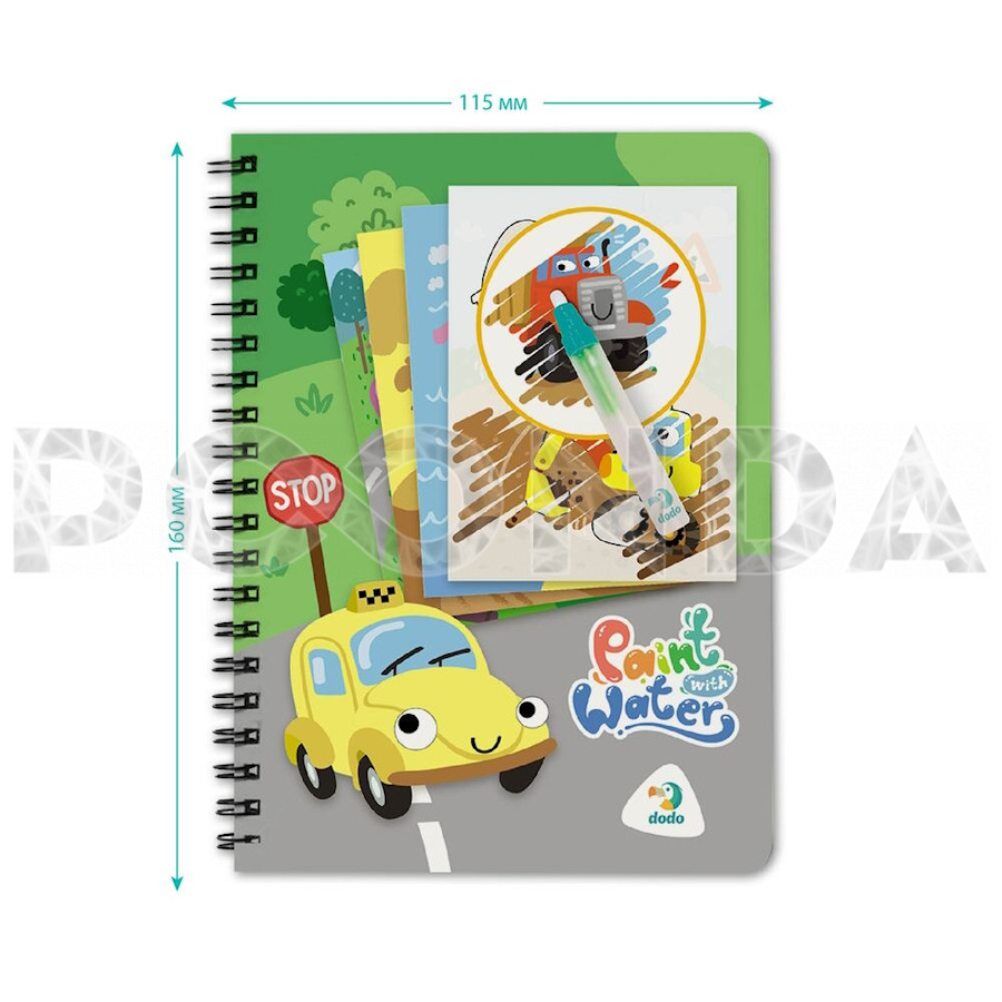 Раскраска Dodo Рисуй водой "Транспорт" набор: блокнот 8 стр, маркер, 300309