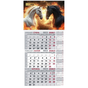 Календарь квартальный 2026 год Конь, 297х630мм, 1 пружина BM.2106.1